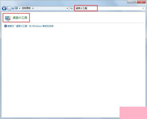 2. 找到“桌面小工具”:在控制面板中,找到“桌面小工具”这一选项,点击进入。